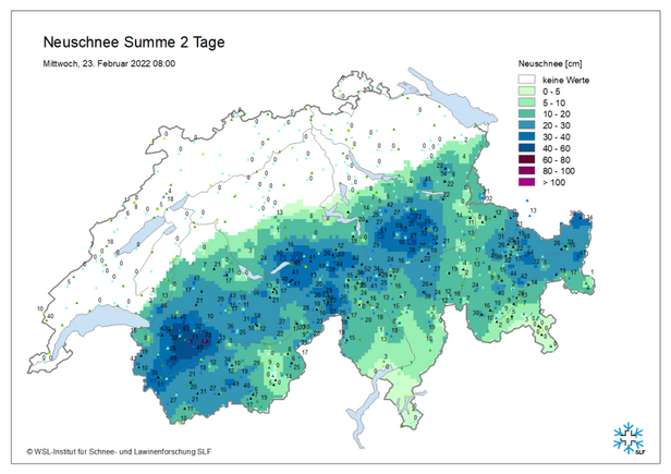En plus des avalanches de glissement et des avalanches à partir de la neige fraîche et de la neige soufflée pendant et immédiatement après la période de tempête, il y a encore eu constamment des avalanches se décrochant dans la neige ancienne. Leur nombre avait tendance à augmenter à nouveau un peu après les chutes de neige du début de la semaine.