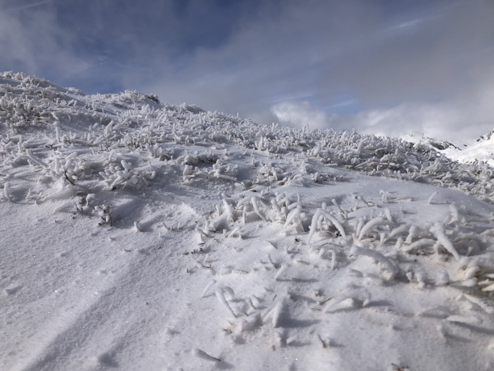 - Dans certaines régions du sud du Valais et des Grisons également, le recouvrement des couches fragiles dans la neige ancienne était si épais que le poids d’un skieur ne pouvait plus partout se répercuter jusque dans la couche fragile. Des ruptures dans la neige ancienne pouvaient surtout encore être provoquées aux endroits faiblement enneigés.