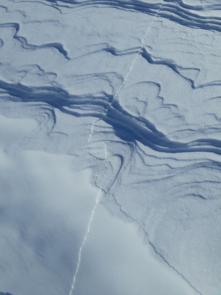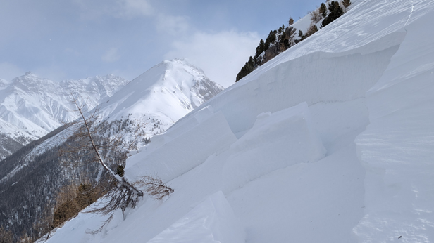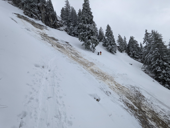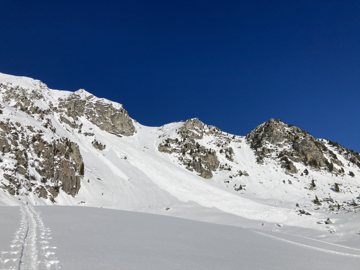 La situation avalancheuse «neige ancienne» était visiblement encore présente, mais elle n’était plus aussi aigüe. Au même moment que ces avalanches sporadiques, des pentes même raides étaient empruntées par des skieurs et les endroits dangereux n’étaient plus aussi nombreux.