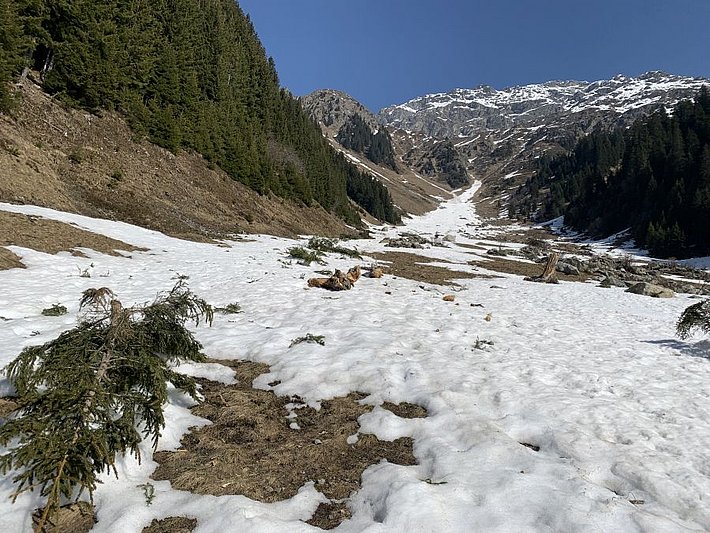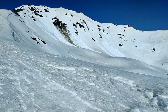 Avec le refroidissement à la fin de la période couverte par ce rapport, se terminait aussi la situation printanière classique. Il ne fallait plus guère s’attendre à des avalanches de neige mouillée. Jusqu’au moment de la clôture de la rédaction, les quantités de neige fraîche étaient encore faibles (cf. photo 5), de sorte que le danger d’avalanches sèches n’augmentait d’abord que légèrement et qu’un danger limité était annoncé dans certaines régions de l’ouest et du nord.