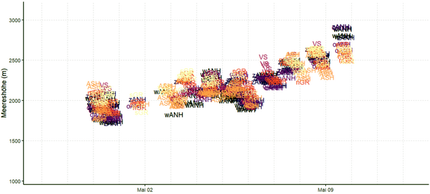 Entre le 4 et le 7 mai, le danger d’avalanches était considéré comme marqué (degré 3) dans certaines régions pour les altitudes supérieures à 2800 m. Les randonneurs étant très rares à ces altitudes en raison du temps maussade persistant, peu de retours du terrain sont parvenus au SLF (figure 5) et il est difficile d’affirmer que ce degré de danger a été atteint à ces altitudes. D’une manière générale, l’incertitude des prévisions est plus grande en limite d’échéance du bulletin, ce qui rend d’autant plus importante une évaluation autonome sur place. Cette incertitude est généralement signalée dans le bulletin par une remarque supplémentaire dans la description du danger.