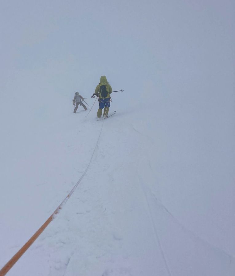Avec la montée continue de l’isotherme zéro degré et de la pluie jusqu’à 2800 m, le manteau neigeux s’est de plus en plus humidifié, même sur les versants nord au-dessus de 2500 m. Cela a entraîné une perte de sa stabilité. Par conséquent, de nombreuses avalanches de neige mouillée de taille moyenne (taille 2) et parfois aussi de grande taille (taille 3) se sont déclenchées (photo 6). C’est surtout dans les régions intra-alpines du Valais et des Grisons qu’elles ont parfois emporté tout le manteau neigeux. Très localement, des avalanches de neige mouillée ont été déclenchées par des personnes (photo 7).