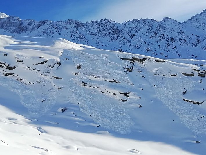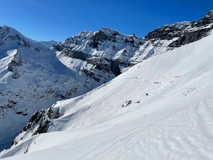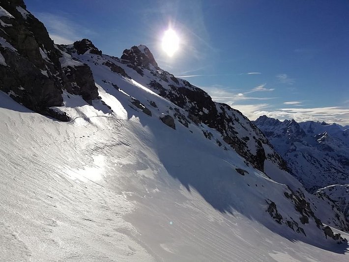 En revanche, des déclenchements d’avalanches devraient encore être possibles dans la neige ancienne, surtout dans les régions intra-alpines des Grisons où les précipitations étaient nettement moins abondantes, en particulier sur les pentes aux expositions ouest, nord et est au-dessus de 2400 m environ. Les signalements de telles ruptures dans la neige ancienne étaient très rares, mais comme dans ces régions les conditions neigeuses étaient très mauvaises (neige croûtée cassante), seules quelques personnes empruntaient ces pentes.