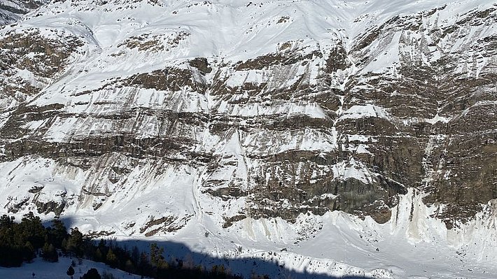 Il restait encore le Valais: Il y a également plu abondamment, mais, avant la pluie, la constitution du manteau neigeux était parfois très fragile, plus précisément dans le centre du Valais et dans le sud du Haut-Valais. En de nombreux endroits, il y a par conséquent une épaisse croûte due à la pluie sur un manteau fragile de neige ancienne. Au moment de la clôture de la rédaction, on ne savait pas avec précision si la neige ancienne fragile pouvait encore donner lieu à des déclenchements d’avalanches provoqués par des personnes (cf. photo 5).