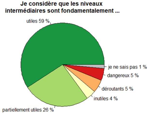 En posant deux questions, nous voulions vérifier si les niveaux intermédiaires étaient compris comme nous les concevons. L’interprétation correcte est la suivante: