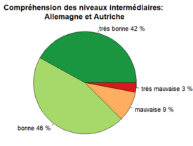Nos voisins autrichiens et allemands ont exprimé leur inquiétude quant à une mauvaise interprétation des niveaux intermédiaires, car dans leur système de notation scolaire, la note s'améliore comme suit : 3+, 2-, 2, 2+, ... . Heureusement, l'enquête montre une bonne compréhension des niveaux intermédiaires, même chez les personnes qui pratiquent les sports d’hiver principalement dans ces pays (n=296). Mais avec 88% de vert foncé ou clair, elle est effectivement un peu moins bonne qu'en Suisse (figure 4). Nous ne savons pas encore si cette différence est réellement due au système de notation scolaire ou simplement la conséquence d'une expérience encore plus faible avec les niveaux intermédiaires.