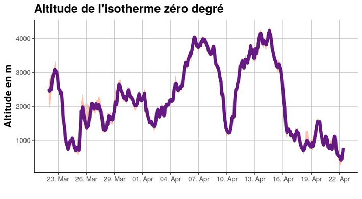 Du lundi 15 jusqu'au lundi 22 avril, les quantités de neige suivantes sont tombées au-dessus de 1400 m environ (figure 3):