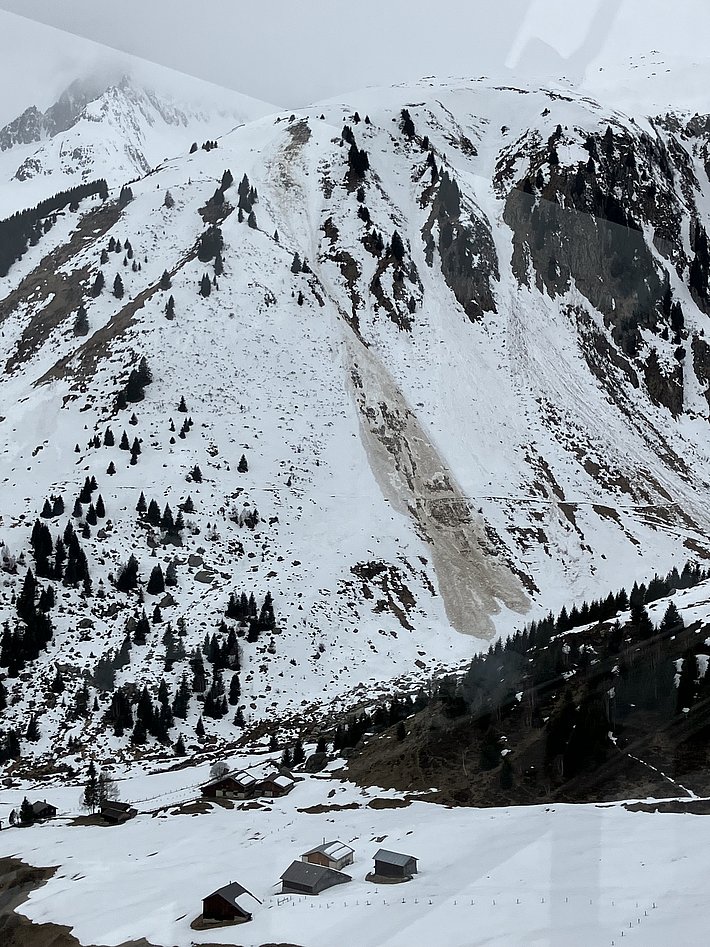 Il n'est pas possible de répondre de manière définitive à la question de savoir si le niveau 4 (fort) a également été atteint dans les régions avoisinantes au nord du centre et du nord des Grisons, aussi touchées par des précipitations abondantes. Des avalanches spontanées s'y sont également produites, comme entre autres au Sentischhorn, Davos (GR) le 26 février (photo 9). Les avalanches étaient souvent de taille moyenne à grande; de très grandes avalanches n'ont pratiquement pas été signalées.
