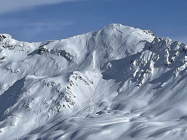Avec la diminution temporaire de l'intensité des précipitations au cours du week-end, l'activité d’avalanches spontanées a également diminué. Un danger marqué d’avalanche (degré 3) était annoncé sur une grande partie du territoire. Le mardi 27 février, un fort danger d'avalanche (degré 4) était à nouveau annoncé dans le sud. Il s’appliquait du nord du Tessin jusque dans la région de la Bernina. Au moment de la clôture de la rédaction, il n'est pas possible de savoir définitivement si le degré de danger 4 (fort) a de nouveau été atteint dans toutes les régions. Le système de détection automatique de Geoprävent à Olivone, TI, a enregistré le 27 février de nombreux départs d’avalanches. De plus, à la frontière de la Haute-Engadine, le mardi 27 février, une très grande avalanche avec une largeur de rupture de près de 1000 m a été signalée sur le flanc nord du Piz Grevalsalvas (2931 m, Surses, GR) (photo 10). Cela indique que le niveau 4 (fort) a été atteint au moins dans certaines régions. En raison de la visibilité réduite, il fallait s'attendre à ce que des avalanches soient encore signalées ultérieurement.