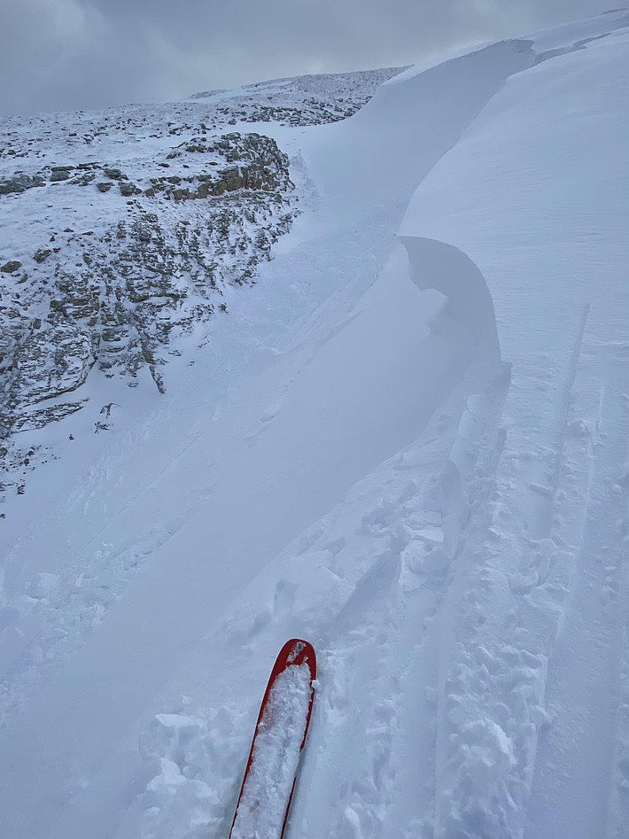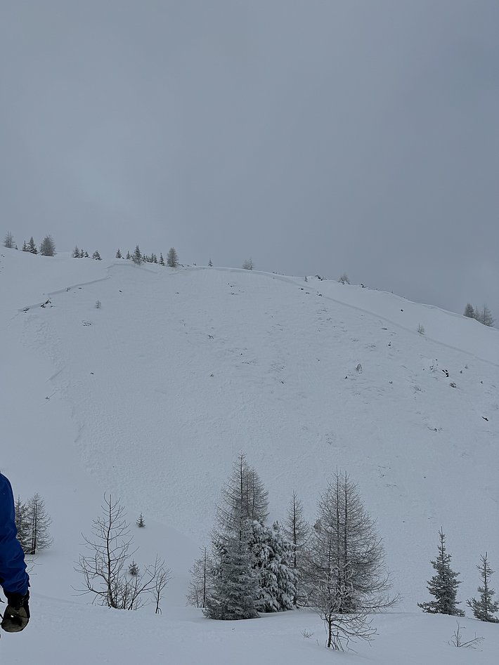 Pendant ou après la deuxième période de précipitations du lundi au mercredi, des avalanches ont à nouveau été déclenchées artificiellement avec succès dans différents domaines skiables. La plupart des avalanches ont été classées comme moyennes, certaines comme grandes et quelques-unes comme très grandes. Par ailleurs, plusieurs avalanches spontanées ont également été signalées ou détectées par des systèmes automatiques. L'une d'entre elles, dans le Bas-Valais, était très grande. 7 avalanches signalées ont été déclenchées par des personnes (cf. Photo 6). Elles étaient de taille petite à moyenne.