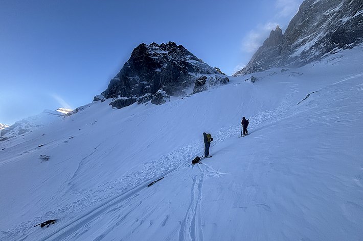 Au cours de la troisième semaine de janvier, le mince manteau neigeux, et d'une manière générale aussi la neige proche de la surface, ont subi une métamorphose constructive et sont devenus meubles. Sur les pentes abritées du vent, du givre de surface s'est également formé. Cette situation constituait un fondement défavorable pour la neige soufflée du samedi 18 janvier, en particulier sur les pentes à l'ombre.