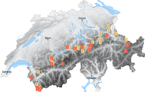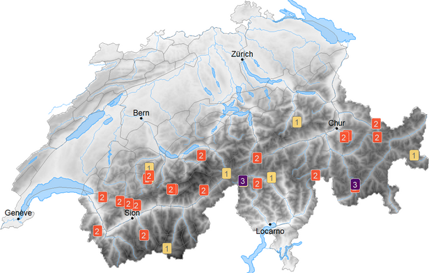 Au cours de la deuxième semaine de janvier, des précipitations sont tombées sur une grande partie du territoire. La limite des chutes de neige se situait d'abord à 1800 m et est descendue le 10 janvier jusqu'à basse altitude. Dans l'extrême ouest du Bas-Valais, dans le nord du Valais, sur la crête principale des Alpes dans le Haut-Valais ainsi que dans le nord-ouest du Tessin, l'apport de neige était de 40 à 60 cm ; ailleurs, sur la crête nord des Alpes, en Valais et dans le nord du Tessin, il était de 20 à 40 cm (figure 1, informations sur la répartition des régions). Le vent était modéré à fort, et même temporairement tempétueux de secteur sud-ouest, les 10 et 11 janvier de secteur nord-ouest, et le 12 janvier de secteur nord-est. Le week-end du 11 et 12 janvier, le temps était généralement ensoleillé et le dimanche, l'isotherme zéro degré est descendu jusqu'à basse altitude. La neige fraîche a été fortement transportée par le vent.