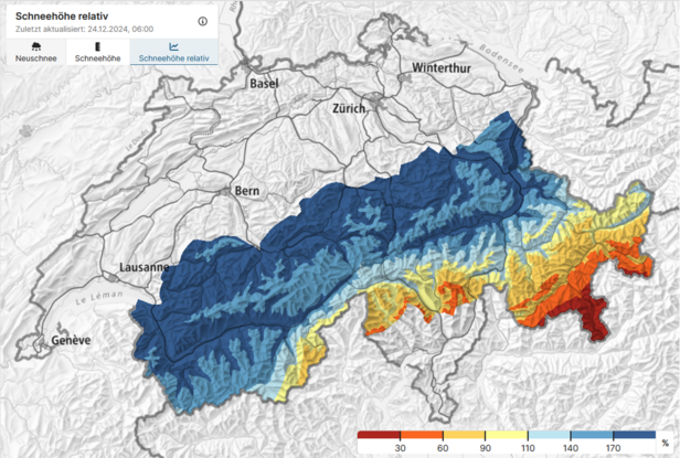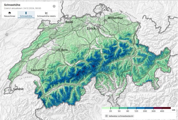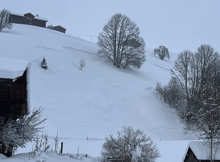 ... mais situation avalancheuse critique en raison de la tempête et de la neige ancienne fragile. Les grandes quantités de neige fraîche dans l'ouest et le nord ont entraîné, avant et pendant les journées de Noël, une situation avalancheuse critique et un fort danger d'avalanche (degré 4) sur une grande partie du territoire.