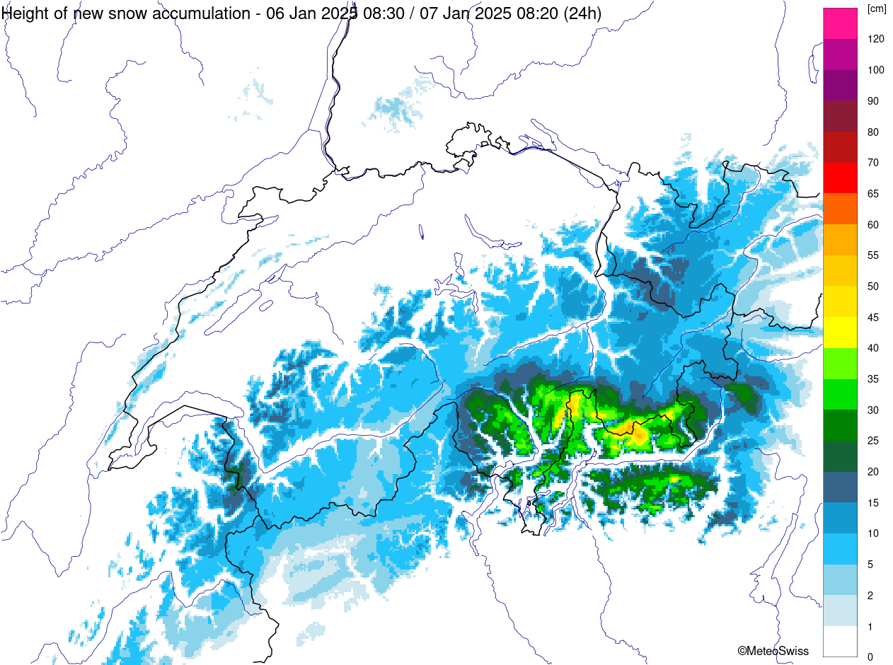 Du lundi 6 au mardi 7 janvier : Enfin de la neige dans le sud, tempête de foehn dans le nord ¶