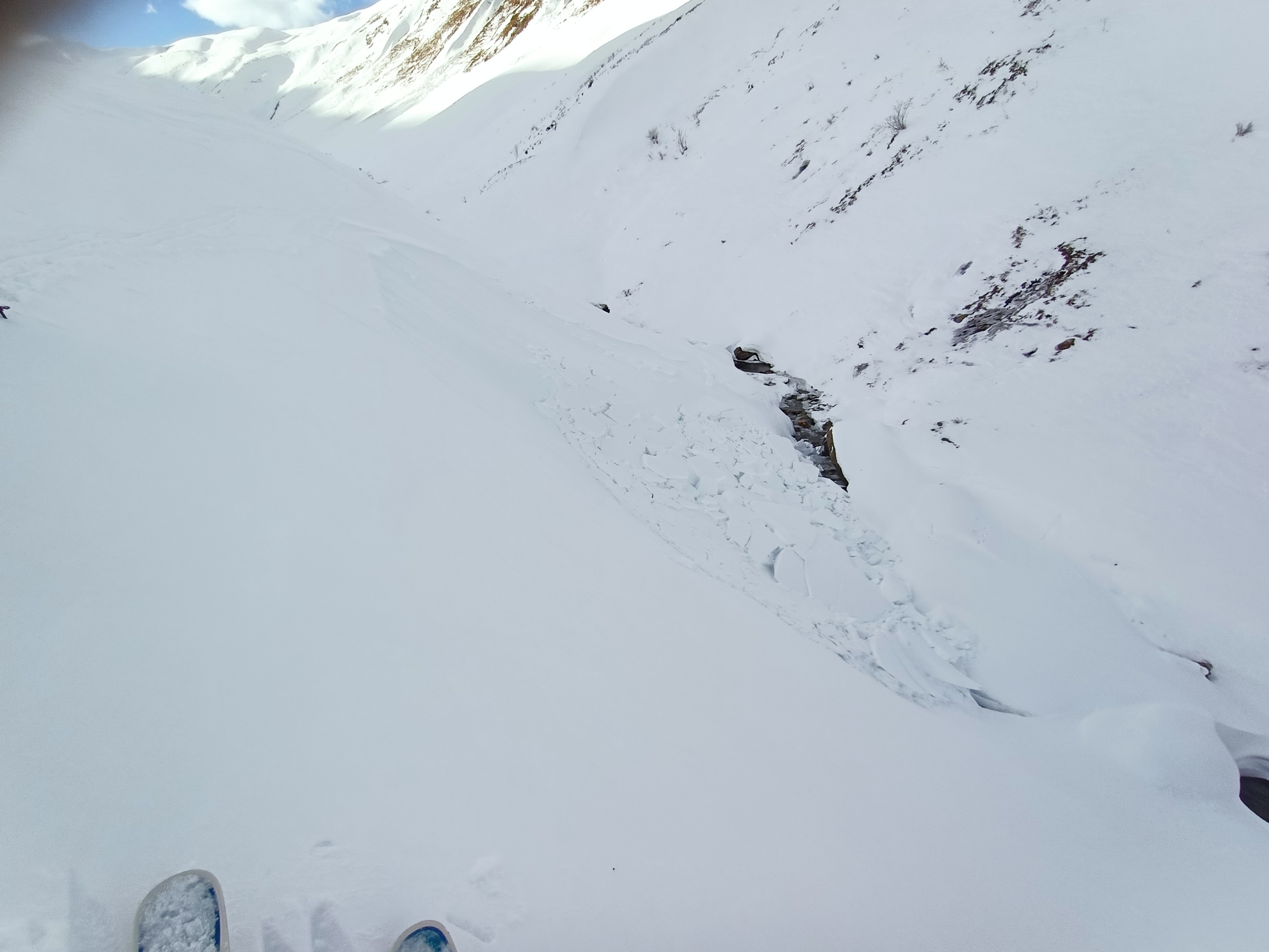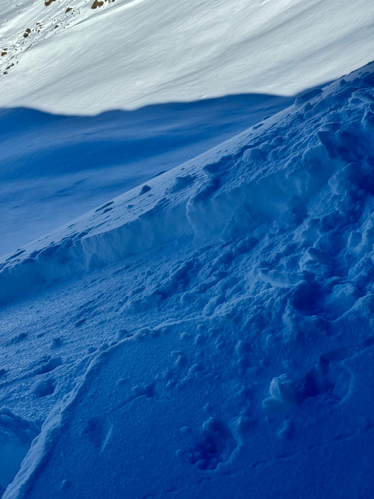 Le vent du sud, parfois fort, a entraîné localement la formation d'accumulations de neige soufflée susceptibles de se décrocher. Celles-ci se sont également déposées en partie sur des surfaces à grains anguleux. En raison de la faible quantité de neige transportable, elles étaient toutefois généralement petites et représentaient surtout un danger en cas de piège topographique ou de chute potentielle (cf. figure 2).