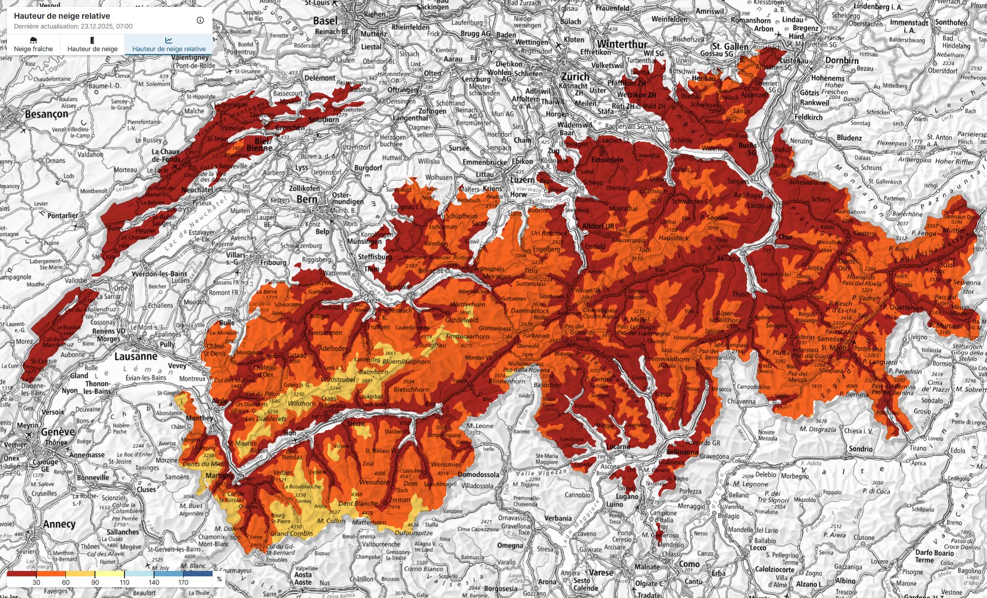 Situation d'enneigement et nouvelle carte "Hauteur de neige relative" ¶