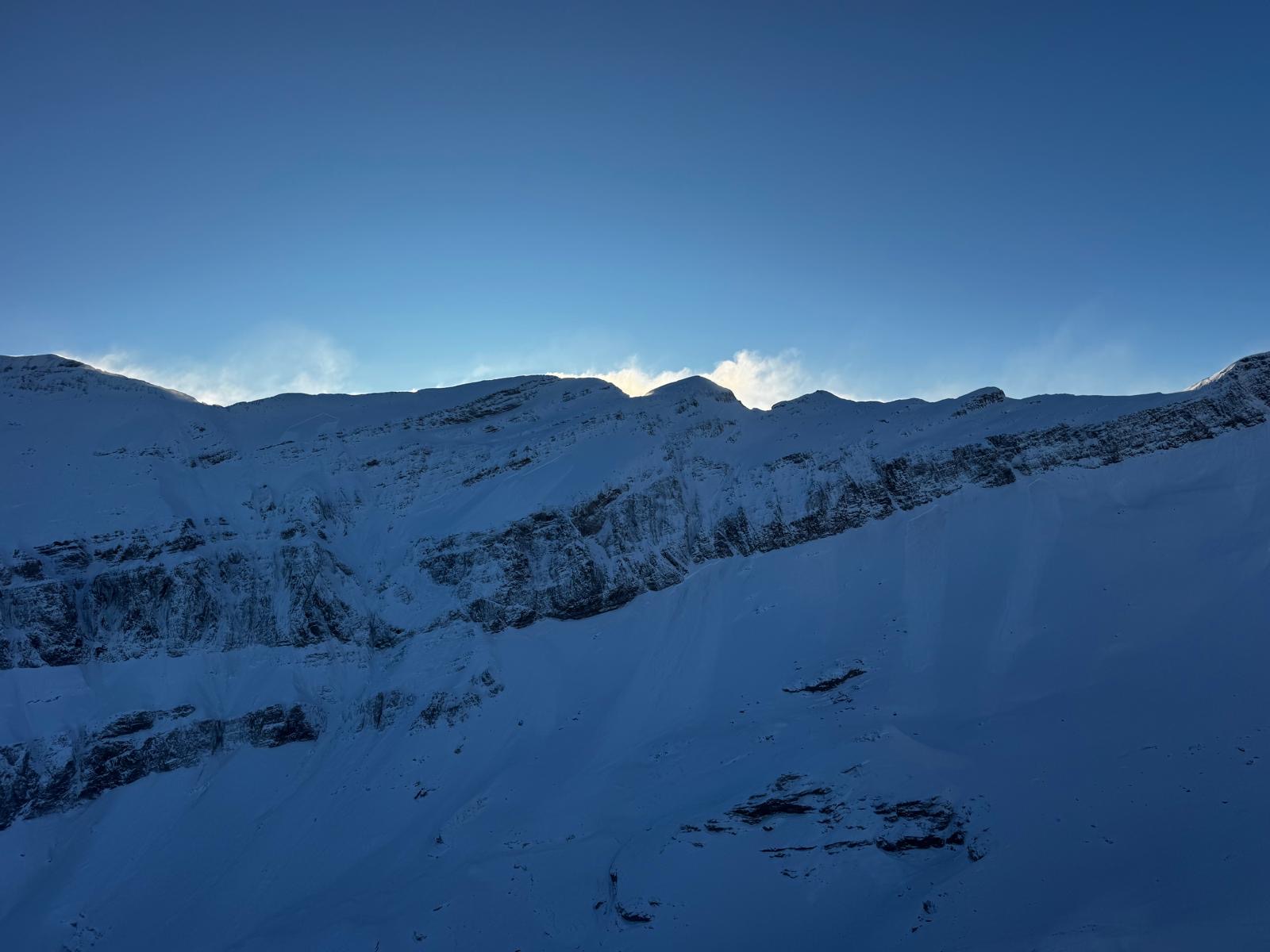 Par ailleurs, sur une grande partie du territoire, surtout sur les pentes exposées au nord, au-dessus de 2200 à 2400 m, le manteau neigeux présentait des couches à grains anguleux. Ces couches étaient souvent parsemées de croûtes. Dans ces couches de base, les avalanches pouvaient se déclencher facilement, ou des avalanches déclenchées près de la surface pouvaient ensuite se propager dans ces couches plus profondes (cf. photo 5).