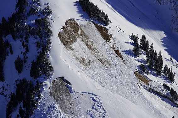 Les avalanches de glissement, comme les avalanches de plaque, présentent une cassure linéaire, mais ici c’est l’ensemble du manteau neigeux qui glisse. Ce n’est possible que sur un sol lisse, comme de l’herbe couchée ou des dalles rocheuses. Plus le versant est raide, plus la neige glisse tôt.