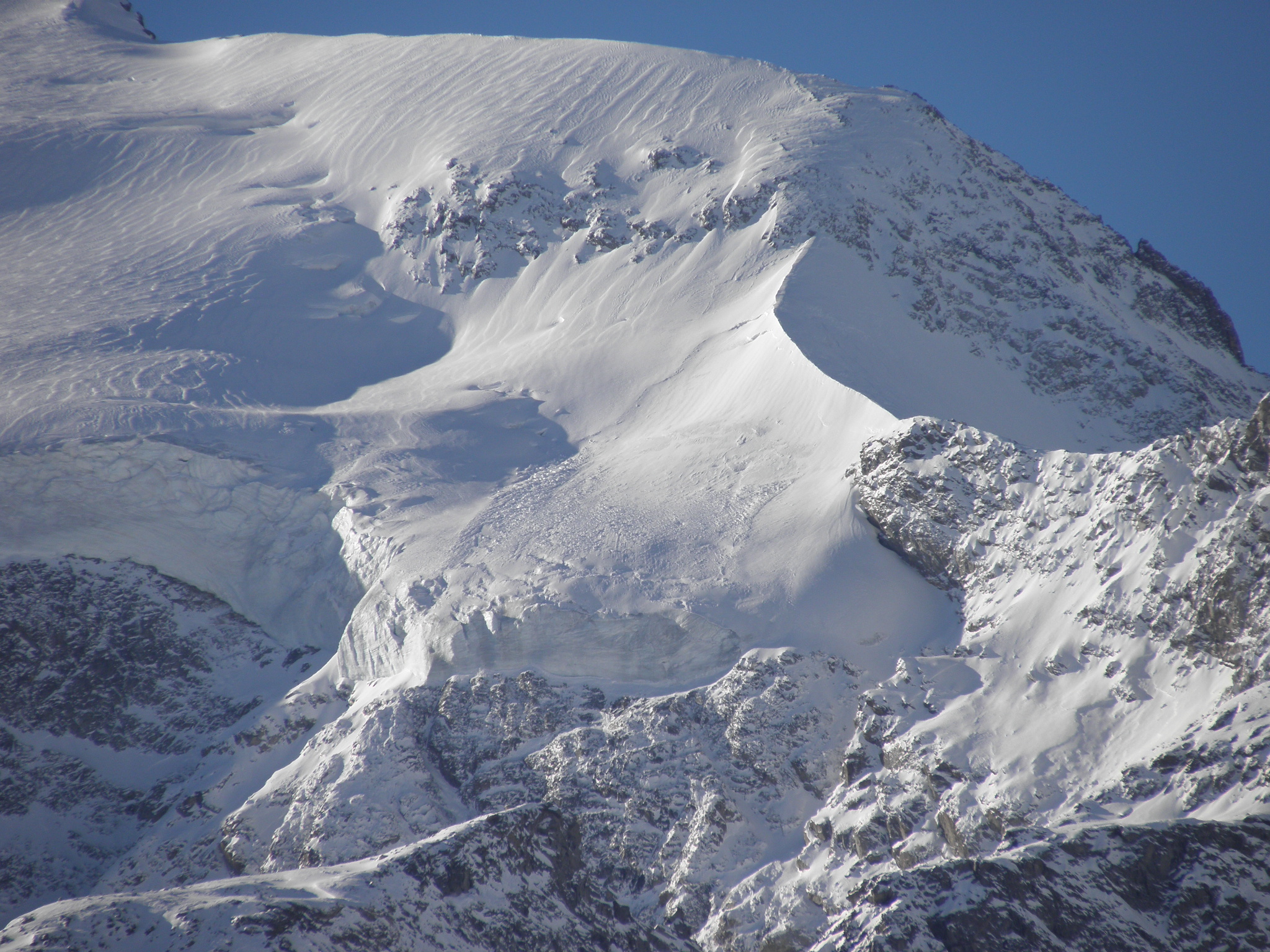 Avant le nouvel assaut de l'hiver au cours du premier week-end de novembre, un danger limité d'avalanche (degré 2) régnait sur une grande partie des Alpes suisses. Entre le 2 et le 4 novembre, un danger marqué d'avalanche a été mis en garde, surtout dans le sud. Pendant les chutes de neige, la grande quantité de neige fraîche et de neige soufflée était sujette à des perturbations. Après que plusieurs avalanches spontanées de plaque de neige se soient déclenchées le dimanche 2 novembre dans la région de la Bernina dans la neige ancienne proche du sol et qu'elles aient pris de l'ampleur, l'attention s'est portée sur la neige ancienne sur les pentes à l'ombre au-dessus de 2800 m (cf. photo 4, photo 5).