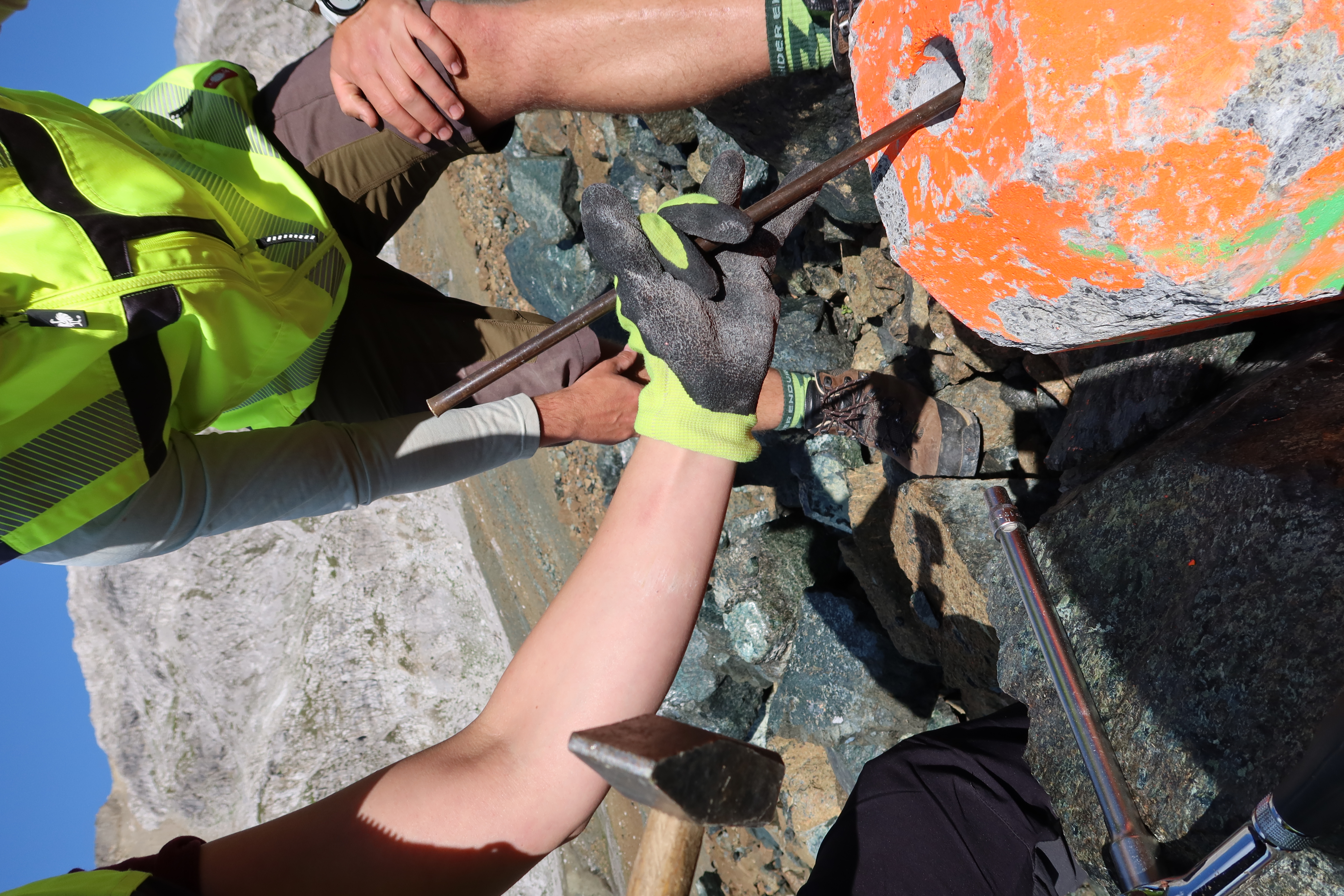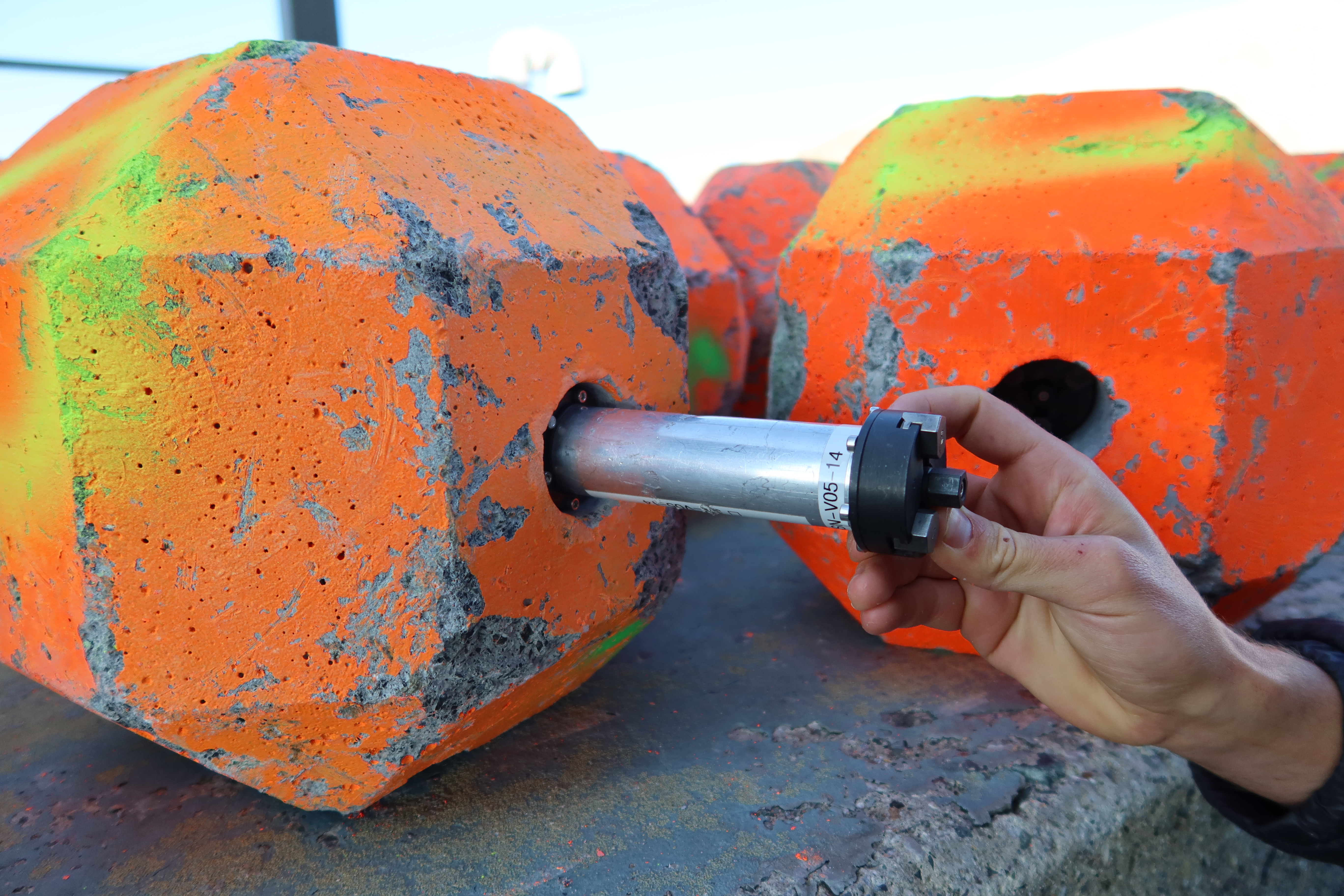 Borner et ses assistants insèrent de longs cylindres métalliques dans des trous prépercés et les calent. «Il ne faut pas trop les serrer, sinon des pièces se détachent», prévient le chercheur. Un capteur est placé dans chacun de ces cylindres. Une collègue chercheuse consigne exactement quel capteur est placé dans quel cylindre et dans quelle pierre. Avec leur aide, Borner mesure diverses données, notamment l'accélération et la vitesse de rotation.