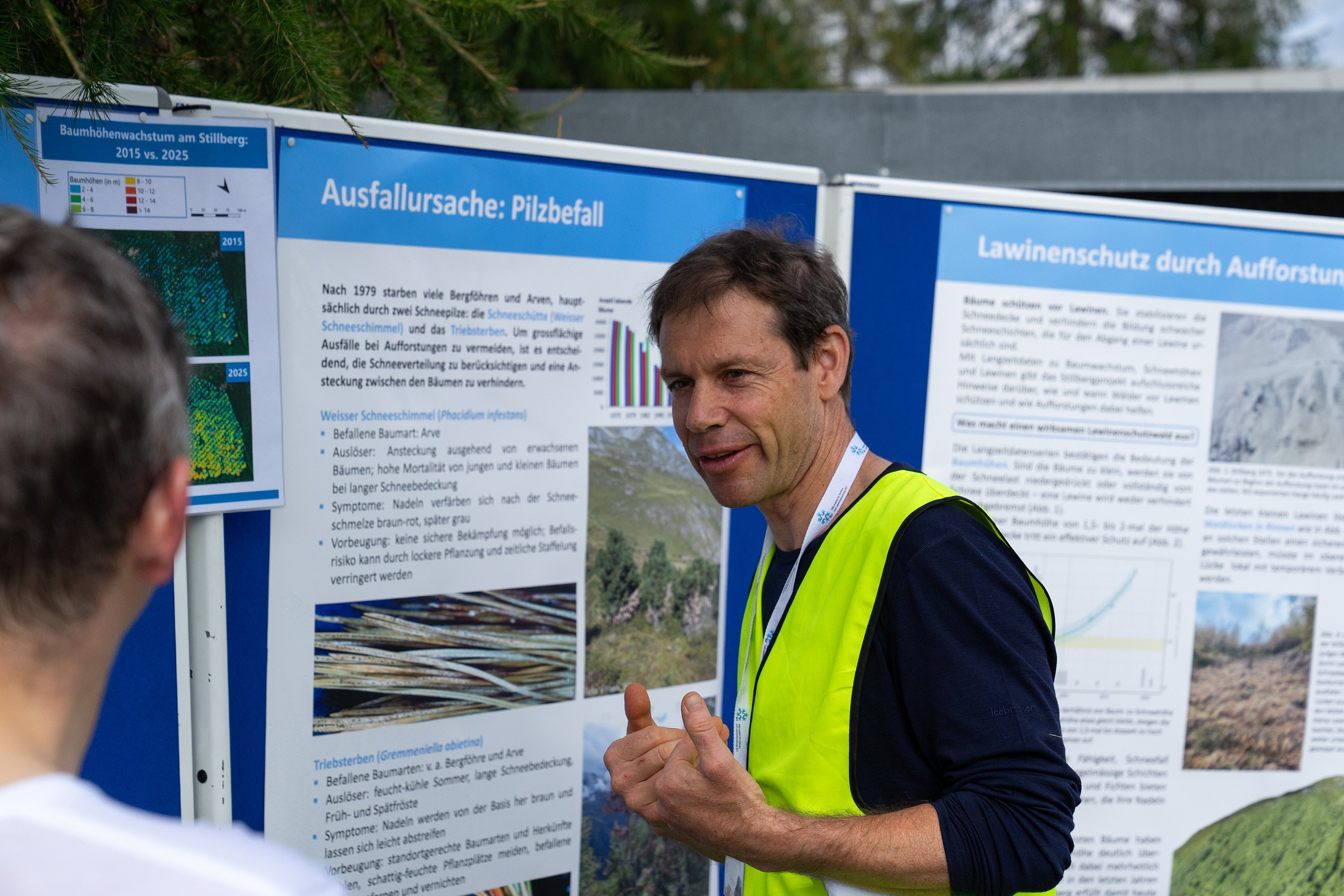 Am Samstag, 13. September 2025 informierten sich rund 250 Personen über 50 Jahre Forschung auf der Versuchsaufforstung Stillberg in Davos.