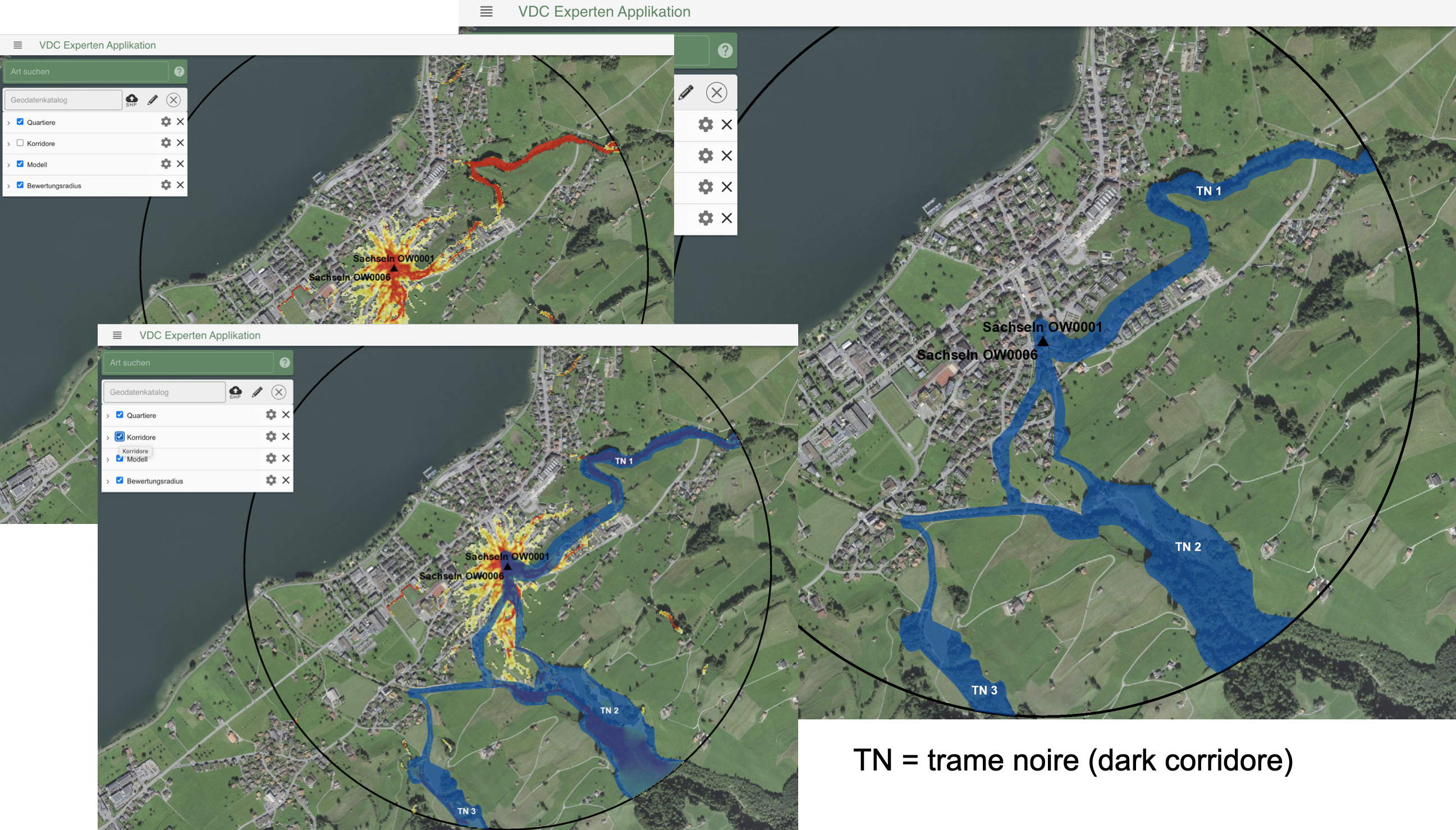 In diesem, ebenfalls durch das BAFU finanzierten Anschlussprojekt hat die WSL Korridore für 239 Quartiere von national prioritären Arten (Myotis myotis, Rhinolophus ferrumequinum, Rhinolophus hipposideros und Plecotus sp.) berechnet. Fachleute von SWILD haben die Stromflussmodelle danach zu flächigen GIS-Elementen abstrahiert und FledermausexpertInnen der Koordinationsstellen für Fledermausschutz Ost (KOF) und West (CCO) haben diese Korridore vor Ort validiert. Im Anschluss an die Validierung werden diese Korridore nun sukzessive auf vdc.wsl.ch dargestellt. Der Zugriff auf diese Daten ist limitert auf die kantonalen Naturschutzfachstellen sowie die kantonalen FledermausschutzexpertInnen.