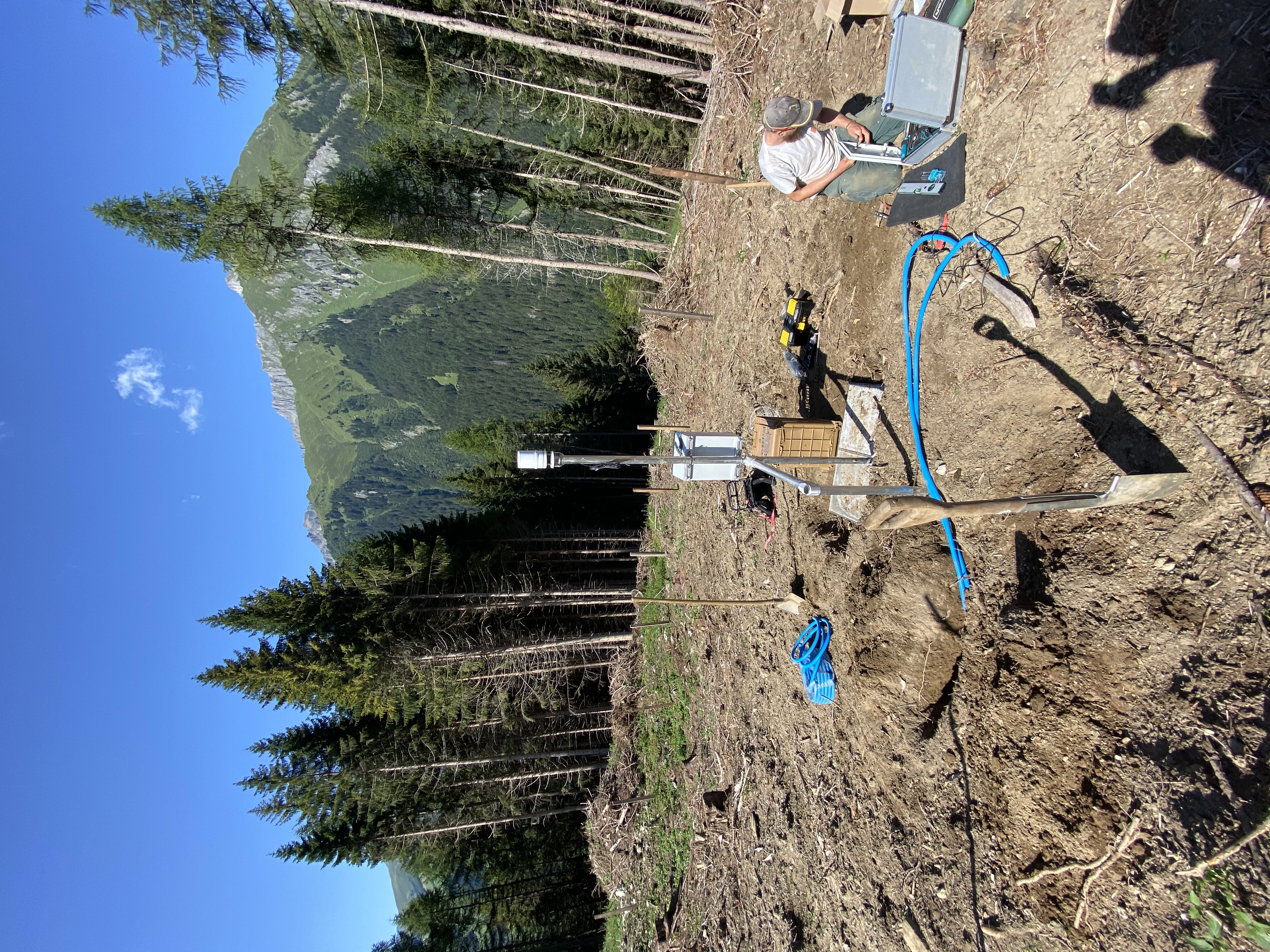 Pour effectuer des relevés du climat local, une station climatique automatisée est exploitée sur chaque placette. L’humidité du sol est ainsi également mesurée.
