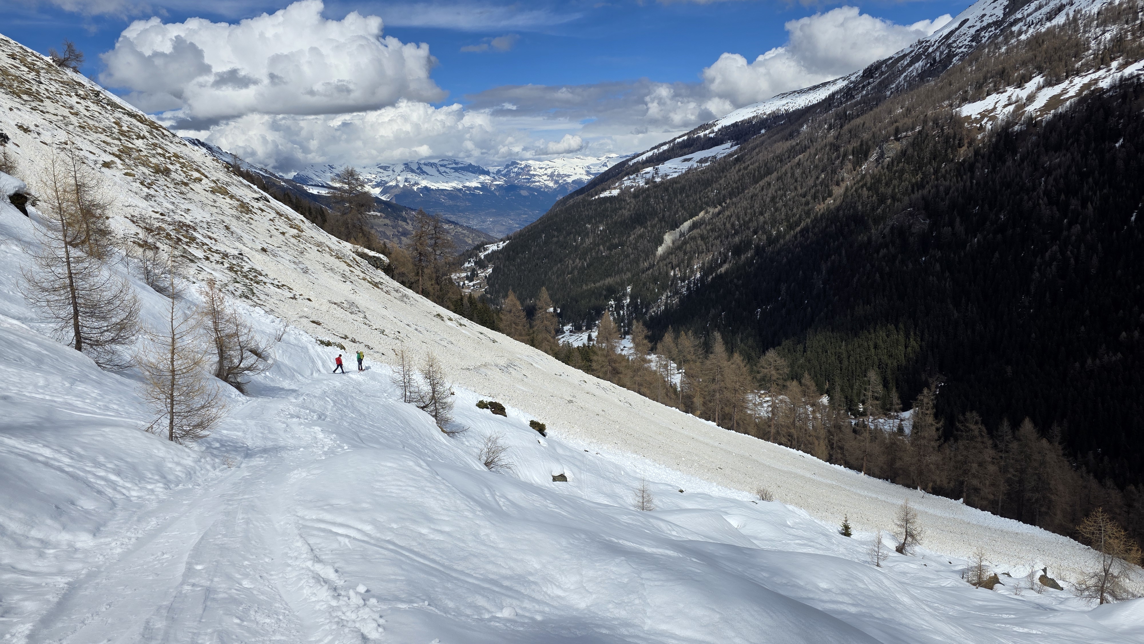 Dal 9 al 17 marzo 2025, una pronunciata situazione di sbarramento da sud ha causato un intermezzo invernale con abbondanti nevicate nelle regioni meridionali. In una settimana, in Ticino e nella zona del Sempione è caduto fino a 1,5 m di neve al di sopra dei 1800 m circa, ma anche nelle regioni occidentali sul Gran San Bernardo e in quelle orientali dalla valle Bregaglia alla zona del Bernina i nuovi apporti sono stati di quasi 1 m. Il manto nevoso ha riacquisito dinamismo: nelle regioni meridionali, specialmente sui pendii esposti a nord la neve è infatti nuovamente caduta su una superficie del manto di neve vecchia sfavorevole formata da strati debolmente coesi a cristalli sfaccettati. Gli strati di neve vecchia e ventata erano pertanto instabili e si sono potuti avere distacchi di valanghe nella parte superiore del manto nevoso. Nel Vallese, in Ticino e nei Grigioni gli strati fragili nella parte basale del manto sono diventati nuovamente instabili. Qui, soprattutto sui pendii in ombra le valanghe hanno coinvolto ancora una volta la neve vecchia basale. Per contro, sui pendii esposti a sud la situazione era più favorevole poiché qui prima delle nevicate il manto nevoso era umido fino in quota. In seguito agli abbondanti apporti di neve fresca, specialmente nelle regioni con un manto di neve vecchia debole e nel sud dei Grigioni il pericolo di valanghe è salito temporaneamente al grado 4 (forte). Qui si è avuta un’elevata attività valanghiva, con numerosi distacchi spontanei o provocati da persone. In particolare in val Müstair, la struttura del manto nevoso era straordinariamente debole; qui le fratture nella neve vecchia basale erano pertanto assicurate: già per tutto l’inverno erano state segnalate valanghe spontanee e provocate di dimensioni pericolose che avevano coinvolto la neve vecchia.