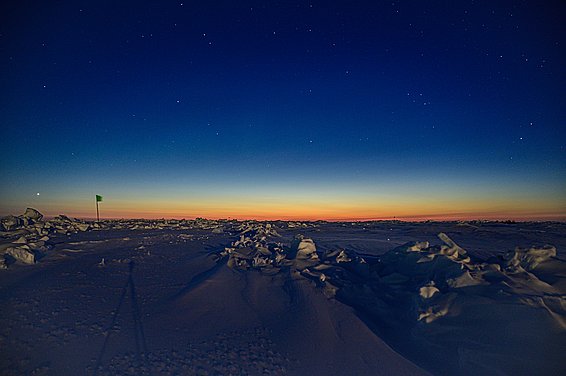 Evviva! Per la prima volta da molto tempo, l’orizzonte cambia colore. Con molta fantasia è possibile individuare delle piccolissime sfumature nella coltre nera e gioirne perché significa che la luce sta, a piccoli passi, tornando. Attualmente le temperature oscillano tra -25 e ‑34 gradi. La tempesta di fine febbraio – con velocità del vento fino a 25 m/s e temperature percepite per l’effetto wind chill inferiori a ‑65 gradi – ci ha regalato una giornata libera. Non far uscire i ricercatori è stata certamente una buona decisione da parte del capitano. Oltre al pericolo di morire assiderati nel giro di pochi minuti, la tempesta ha anche portato con sé un po' di movimento nel ghiaccio, causando l’apertura di alcune fessure e crepacci.