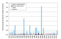 L’istituto di ricerca federale WSL raccoglie sistematicamente dal 1972 tutti i dati e le informazioni sui danni causati dal maltempo. La banca dati, creata con il sostegno dell’Ufficio federale dell’ambiente UFAM, contiene informazioni sui danni provocati da inondazioni, colate detritiche, scivolamenti e, dal 2002, anche da cadute di massi e frane. I danni causati da valanghe, pressione della neve, terremoti, fulmini, grandine e venti tempestosi non vengono considerati nelle analisi. La stima dei danni materiali, infrastrutturali, boschivi e agricoli si basa principalmente sugli articoli pubblicati dai media. Questi dati, che rappresentano una base importante per la valutazione del pericolo, possono essere messi a disposizione degli esperti su richiesta. Il rilevamento dei danni causati dal maltempo da parte del WSL è utile ai fini del reporting sull’ambiente dell’Ufficio federale dell’ambiente UFAM.