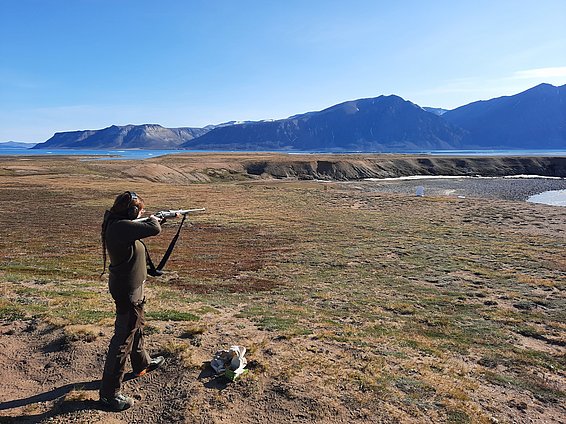 Inspiro, espiro a metà, mani ferme e prendo la mira. Bang! Ho colpito il bersaglio. "Sarebbe un orso polare morto", dice seccamente il mio allenatore di tiro. Un occhio di bue, proprio in mezzo agli occhi. Ok, l'ho mancato anche due volte. Ma un buon colpo è sufficiente per sopravvivere in caso di emergenza. Perché voglio andare in Groenlandia a studiare la vegetazione. Lontano da qualsiasi civiltà, ma forse vicino agli orsi polari. L'addestramento al tiro fa parte della preparazione tanto quanto un corso di primo soccorso.