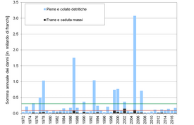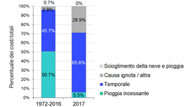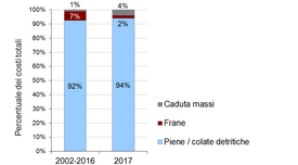 Le catastrofi naturali hanno causato nel 2017 otto vittime e circa 170 milioni di franchi di danni materiali. Si tratta della somma più elevata registrata dal 2007 (700 milioni di franchi allora), ma pur sempre notevolmente inferiore della media al netto del rincaro del periodo compreso fra il 1972 e il 2016, pari a 307 milioni di franchi. Circa il 94% dei danni stimati sono da ricondurre a inondazioni o colate detritiche, mentre slittamenti e processi di caduta massi hanno raggiunto una quota rispettivamente del 2% e 4%. A produrre la maggior parte dei danni (circa il 66%) sono state le precipitazioni temporalesche e altri eventi di precipitazione a forte intensità; la quota dovuta alle piogge persistenti è stata pari al 5%, mentre per il 29% le cause hanno riguardato fattori diversi o sconosciuti.