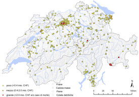 L’istituto di ricerca federale WSL raccoglie sistematicamente dal 1972 tutti i dati e le informazioni sui danni causati dal maltempo. La banca dati, creata con il determinante sostegno dell’Ufficio federale dell’ambiente UFAM, contiene informazioni sui danni provocati da inondazioni, colate detritiche, slittamenti e, dal 2002, anche da cadute di massi e frane. I danni causati da valanghe, pressione della neve, terremoti, fulmini, grandine e venti tempestosi non vengono considerati nelle analisi. La stima dei danni materiali, infrastrutturali, boschivi e agricoli si basa principalmente sugli articoli pubblicati dai media. Questi dati, che rappresentano una base importante per la valutazione del pericolo, possono essere messi a disposizione degli esperti su richiesta.
