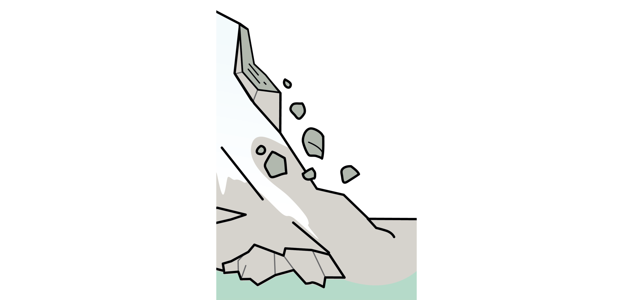 • Caduta di massi: l' attività è aumentata negli ultimi decenni, ma solo nella regione alpina. Lì il permafrost si sta scongelando (vedi riquadro) e i ghiacciai si stanno ritirando. Questo indebolisce la roccia e favorisce il distacco di pietre e masse rocciose.
