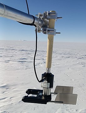Come lo facciamo? Uno degli strumenti che utilizziamo per misurare la neve alla deriva è il FLOWCAPT, uno strumento che assomiglia a un tubo al neon ma contiene un microfono. Quando singoli fiocchi di neve colpiscono il tubo, questo produce un suono al suo interno. Un programma interno cattura le onde sonore e le converte in quantità di neve trasportata.