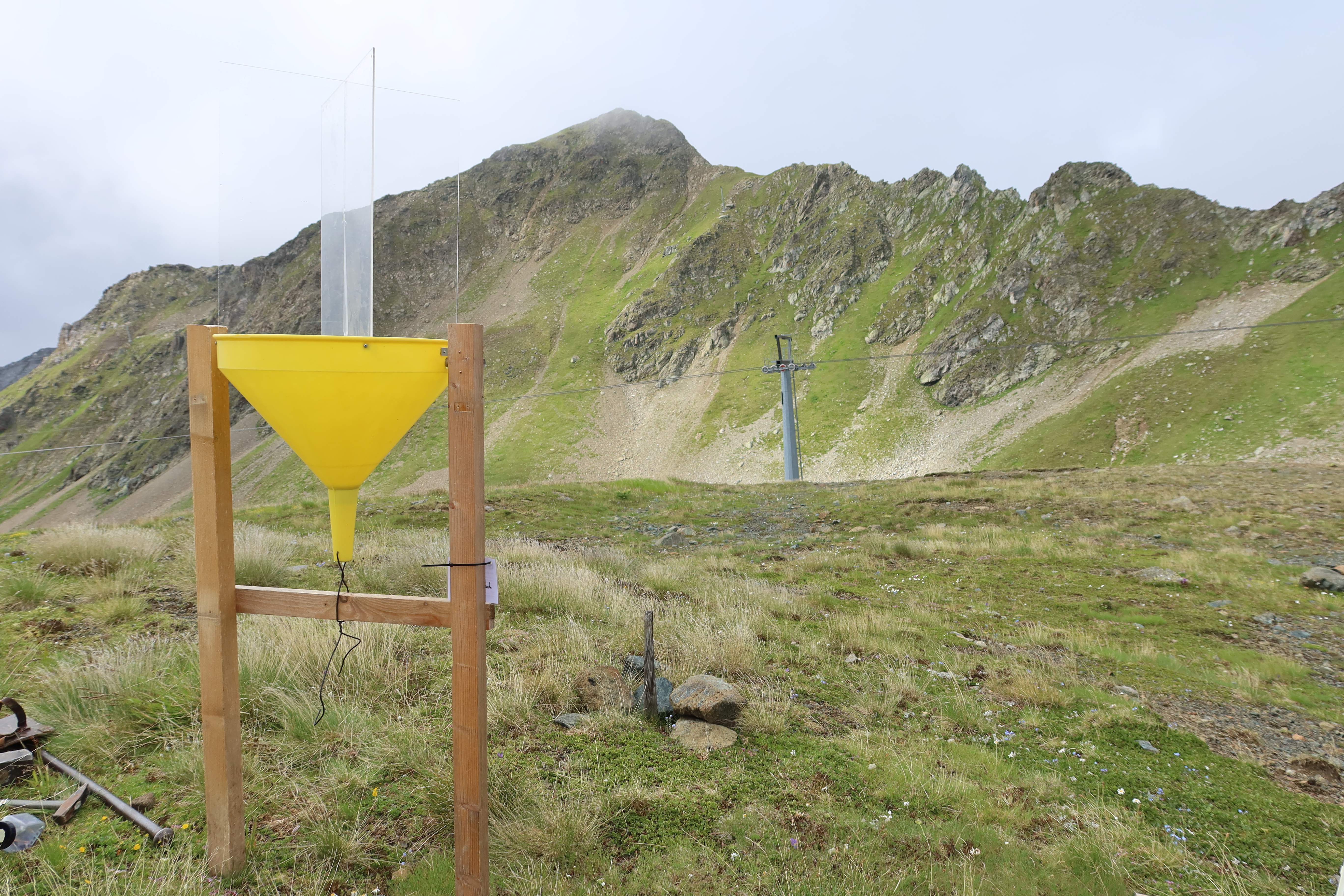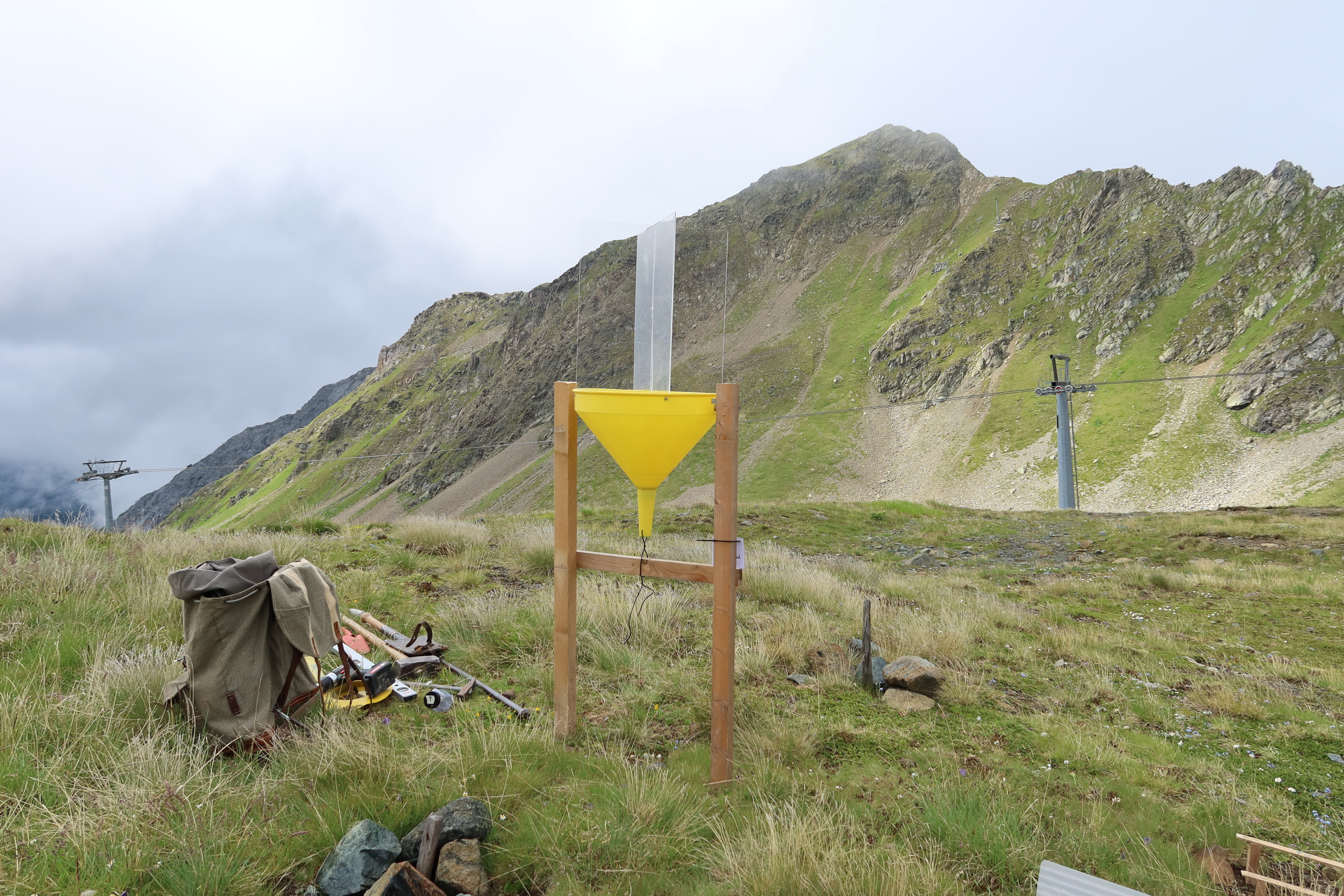 È l'unica trappola del progetto che non è ancora in funzione. "A causa del clima rigido e del più tardivo scioglimento delle nevi in quota, l'abbiamo messa in funzione quattro settimane dopo rispetto agli altri siti", spiega Kurt Bollmann, responsabile del gruppo di ricerca sulla biologia della conservazione del WSL e responsabile del progetto. Un'altra eccezione: i ricercatori smontano completamente la trappola al Weissfluhjoch ogni autunno, mentre negli altri siti il telaio rimane solitamente al suo posto durante la stagione fredda.