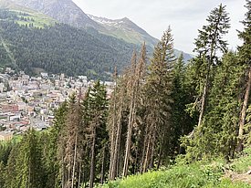 In Bergwäldern stellen Stürme oder Borkenkäferschäden den Schutz vor Naturgefahren wie Lawinen oder Steinschlag zunehmend in Frage. Peter Bebi fasste zwei kürzlich am SLF durchgeführte Doktorarbeiten zusammen, welche bestätigen, dass auch stehendes und liegendes Totholz wie Wurzelteller und windversehrte Bäume in vielen Fällen sehr gut vor Lawinen und Steinschlag schützt. Durchmischte Wälder in punkto Alter und Baumarten sind für eine rasche Wiederbewaldung und eine bestmögliche Anpassung an das Klima von grosser Bedeutung.