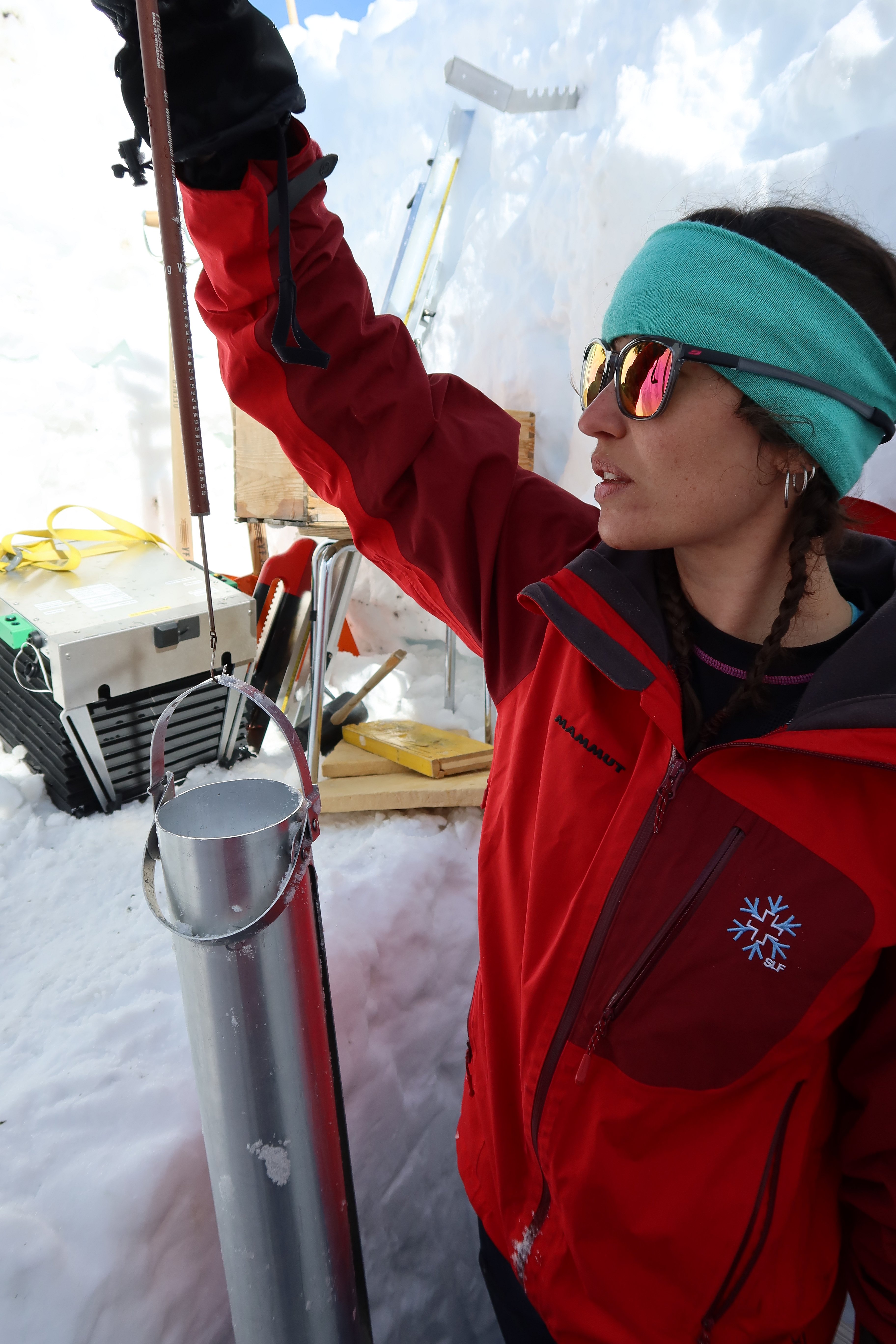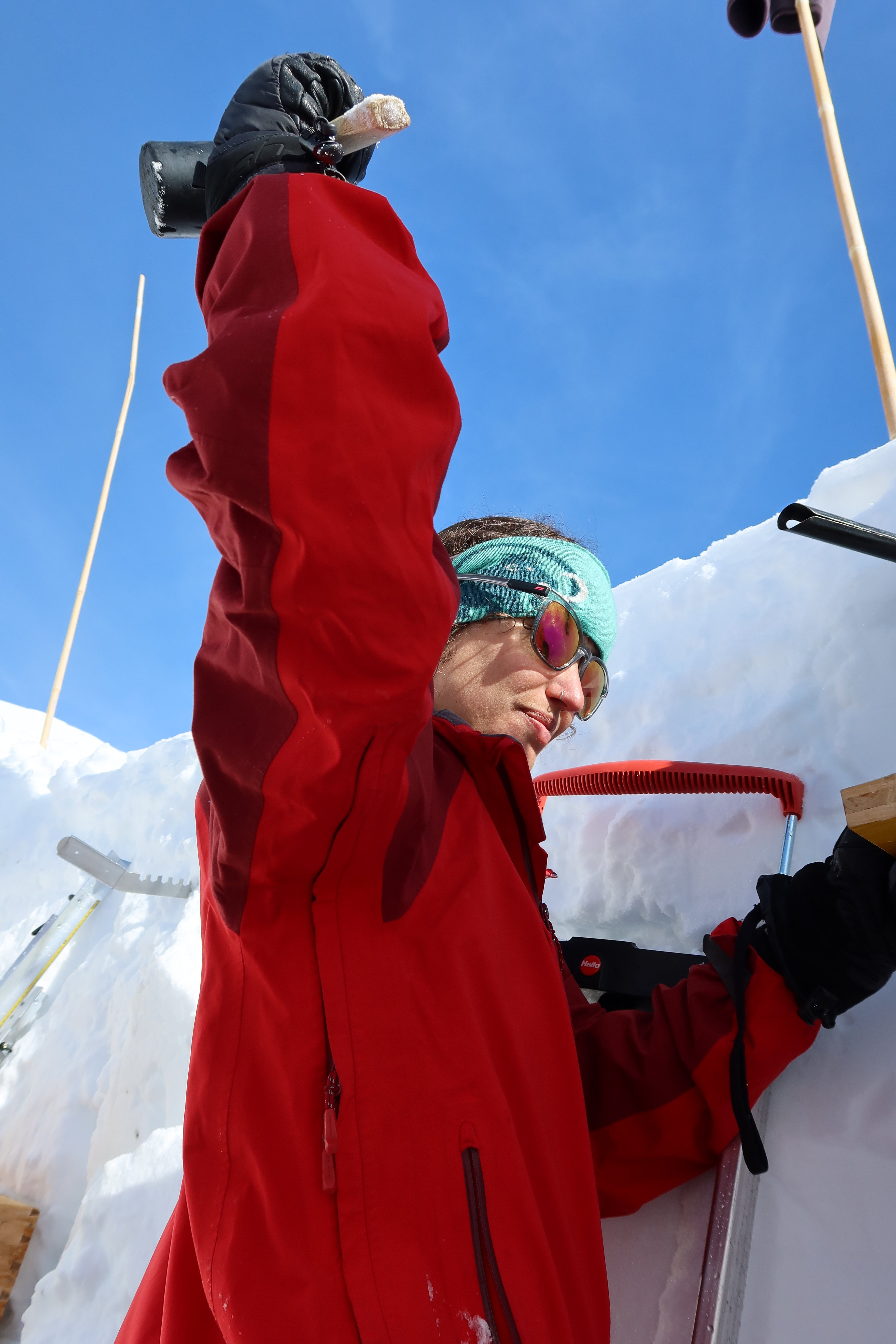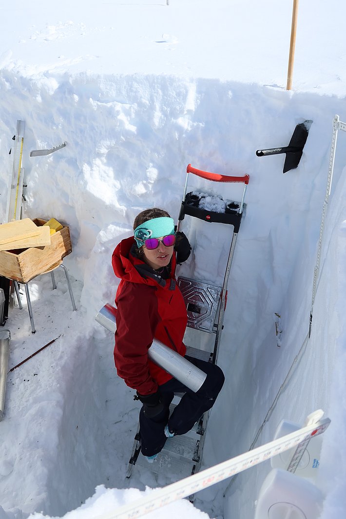 Per raggiungere il loro obiettivo, Carletti e i suoi colleghi scavano fino al suolo e misurano le proprietà della neve. Se la neve è asciutta, è sufficiente un profilo di neve alla settimana. Se è bagnata, scavano e misurano fino a tre volte alla settimana. In questa giornata di marzo, Francesca è stata aiutata da due colleghi, membri di altri gruppi di ricerca dell'SLF. I tre hanno trascorso due ore scavando due metri e mezzo in profondità, spostando quasi due tonnellate di neve, che dovranno essere rigettate nella buca quando Carletti avrà terminato le misure.