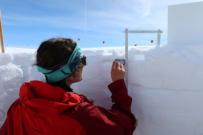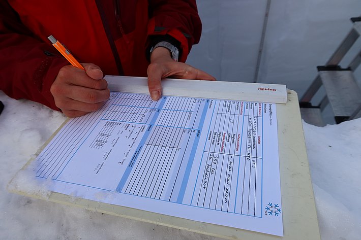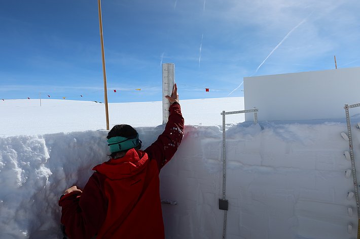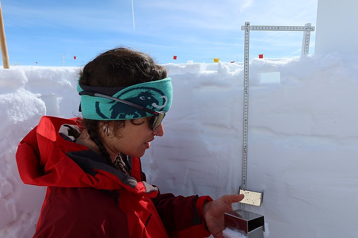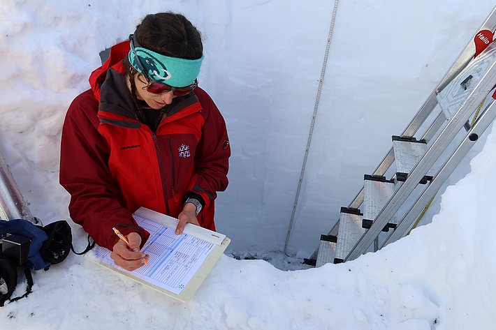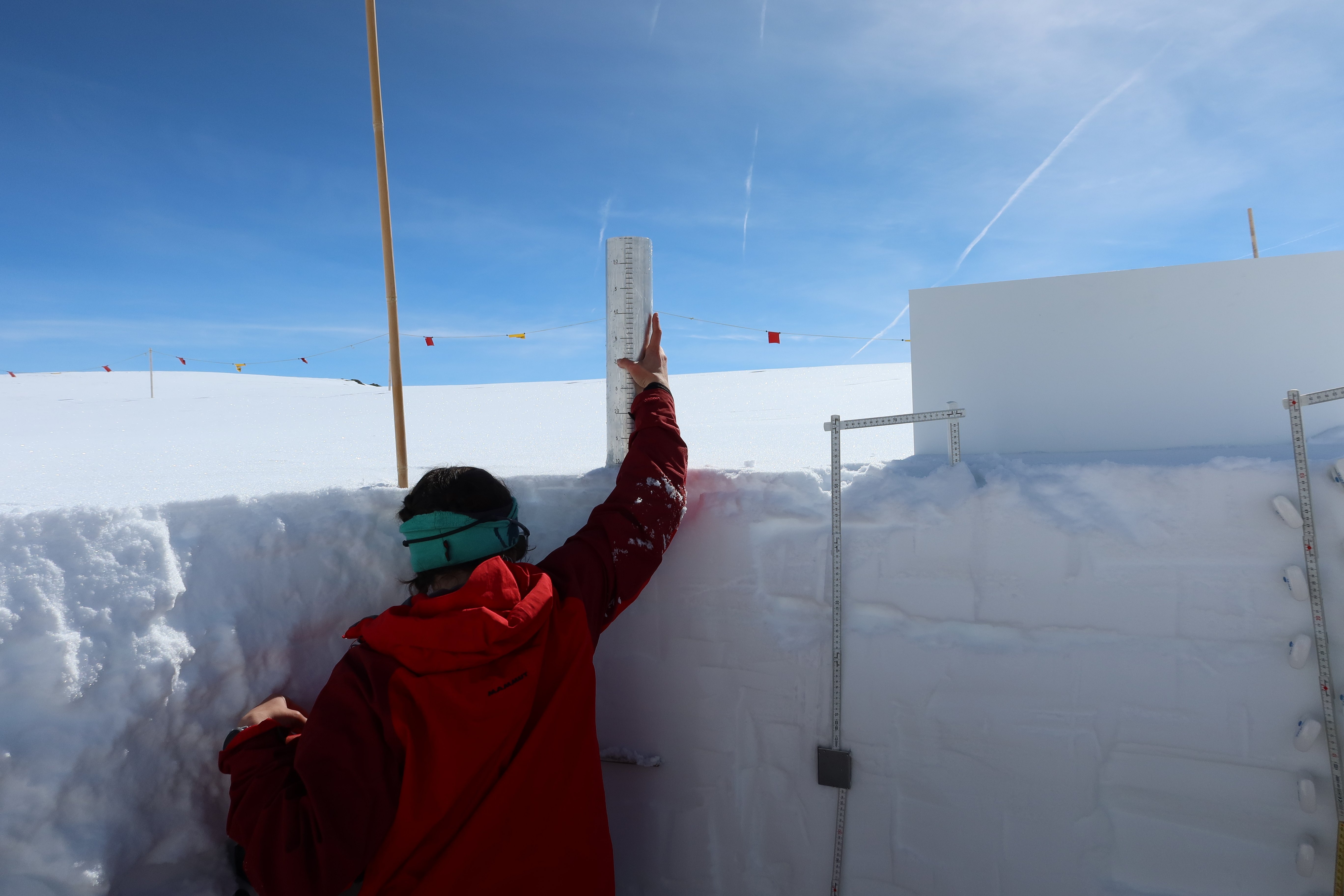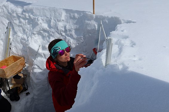 Per raggiungere il loro obiettivo, Carletti e i suoi colleghi scavano fino al suolo e misurano le proprietà della neve. Se la neve è asciutta, è sufficiente un profilo di neve alla settimana. Se è bagnata, scavano e misurano fino a tre volte alla settimana. In questa giornata di marzo, Francesca è stata aiutata da due colleghi, membri di altri gruppi di ricerca dell'SLF. I tre hanno trascorso due ore scavando due metri e mezzo in profondità, spostando quasi due tonnellate di neve, che dovranno essere rigettate nella buca quando Carletti avrà terminato le misure.