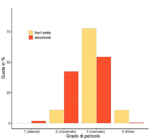 Nella media pluriennale, la maggior parte degli incidenti si verifica con grado di pericolo 3 «marcato» (fig. 4).