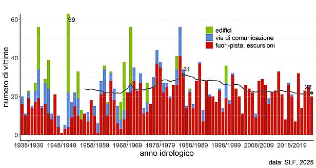 Nella media dell'intero periodo, ogni anno si sono verificati 24 decessi causati da valanghe (fig. 1).
